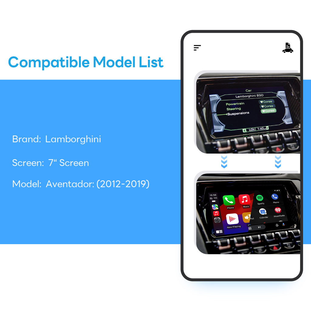 CARPLAY/Android Auto Retrofit Kit for Lamborghini Aventador 2012-2019 with 7‘ Screen ⚡ Description:This device is special for Lamborghini...