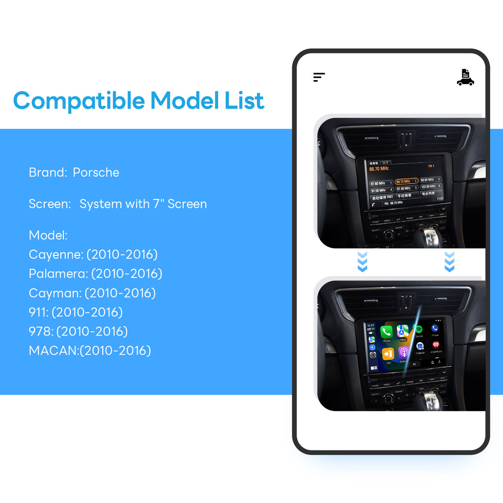 CARPLAY/Android Auto Retrofit Kit for Porsche Cayenne /Palamera/Macan/Cayman/911/978 2010-2016 with PCM3.1 System 7" Screen ⚡ Description:This device is...