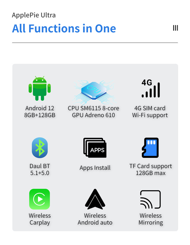 Applepie Ultra QualComm 6115 CarPlay AI Box Android 13 RAM 8GB 8 Core Snapdragon 662 SM6115 Wireless Smart USB Adapter 4G SIM